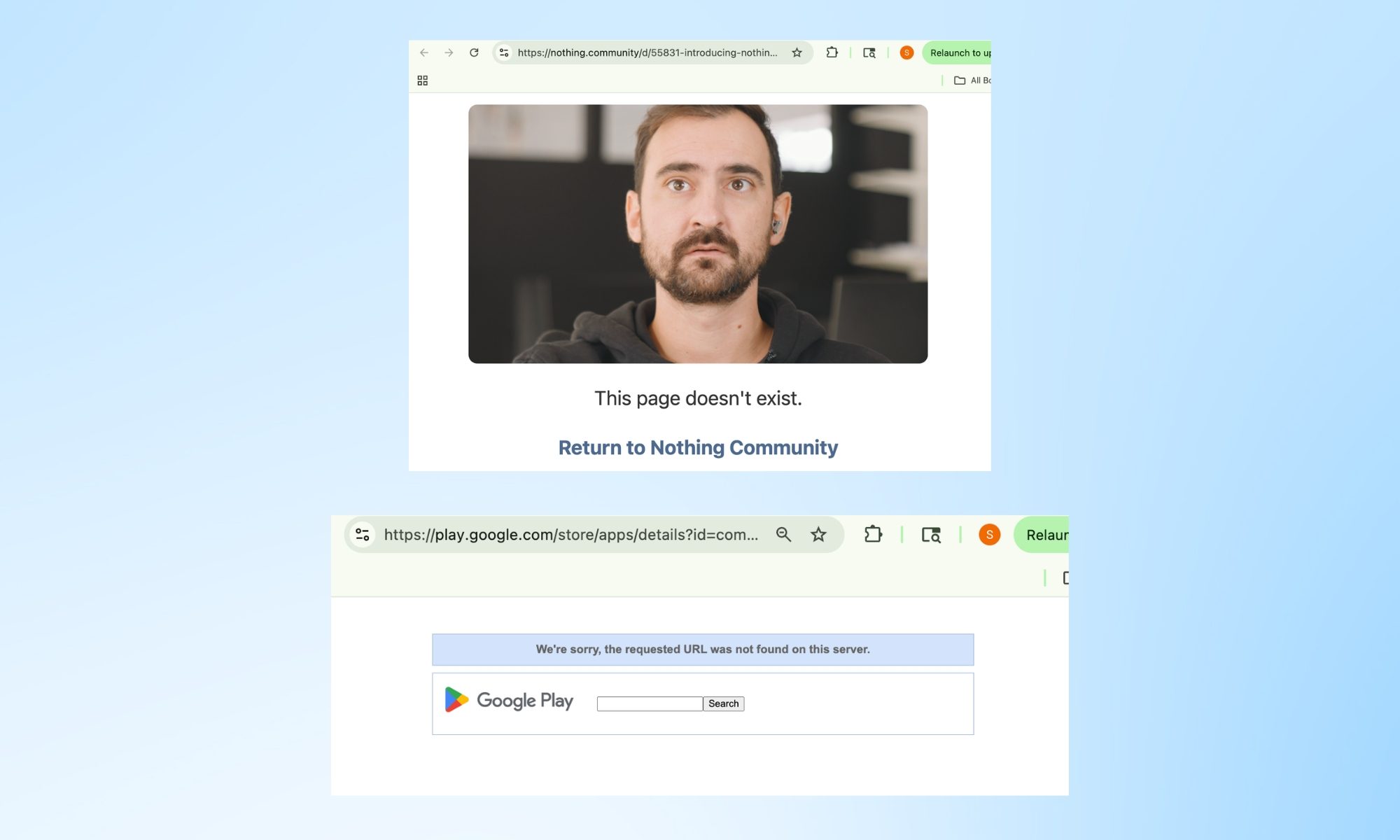 Nothing announced the app for Chrome and Edge (Chromium-based web browsers) and Android smartphones, floating it on both the Chrome Web Store and the Google Play Store (via 9To5Google). However, a few hours later, the app is nowhere to be found, with the official listings returning errors.